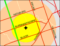 as a circle of say 5 km radius around a store—the exact radius is